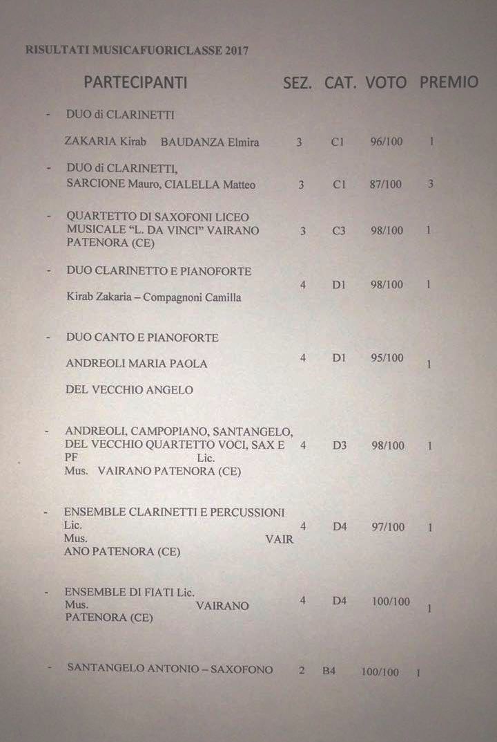 Risultati del concorso Musica&ClarinettoFuoriclasse