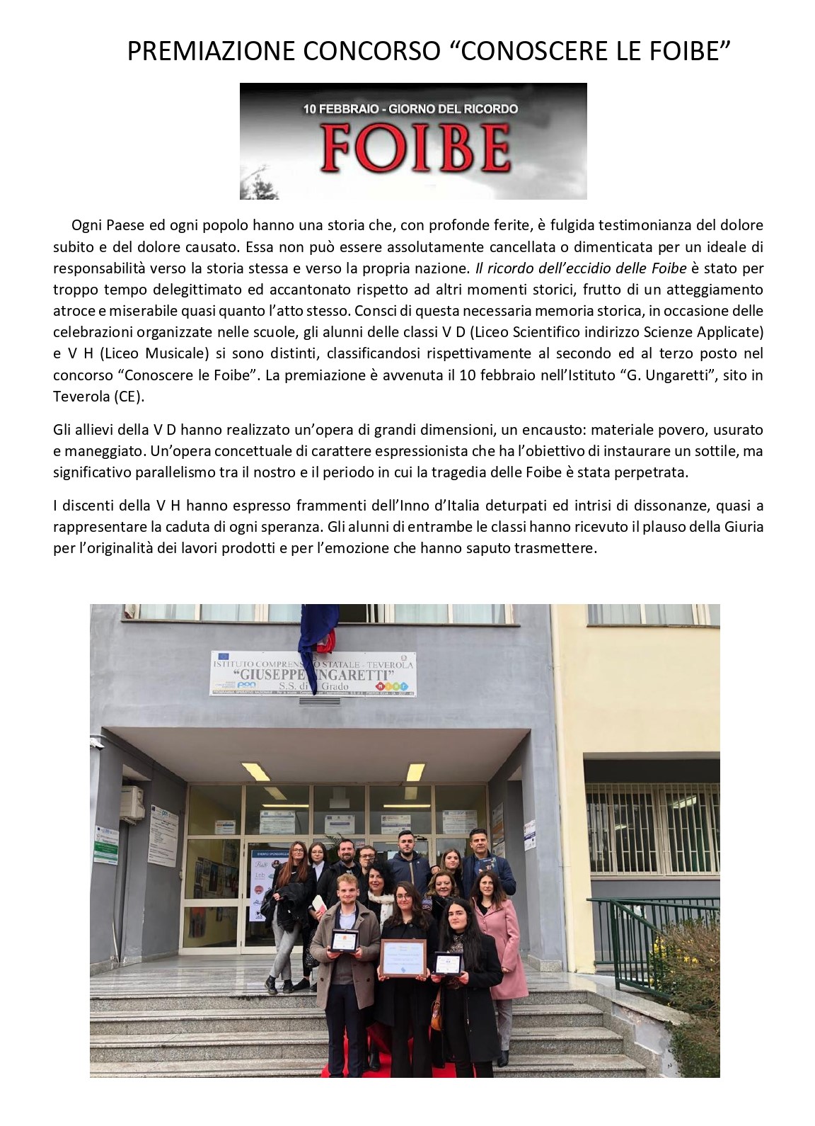 Premiazione concorso "Conoscere le foibe" Allegati: Premiazione concorso Conoscere le foibe.pdf[ ] Indietro Avanti