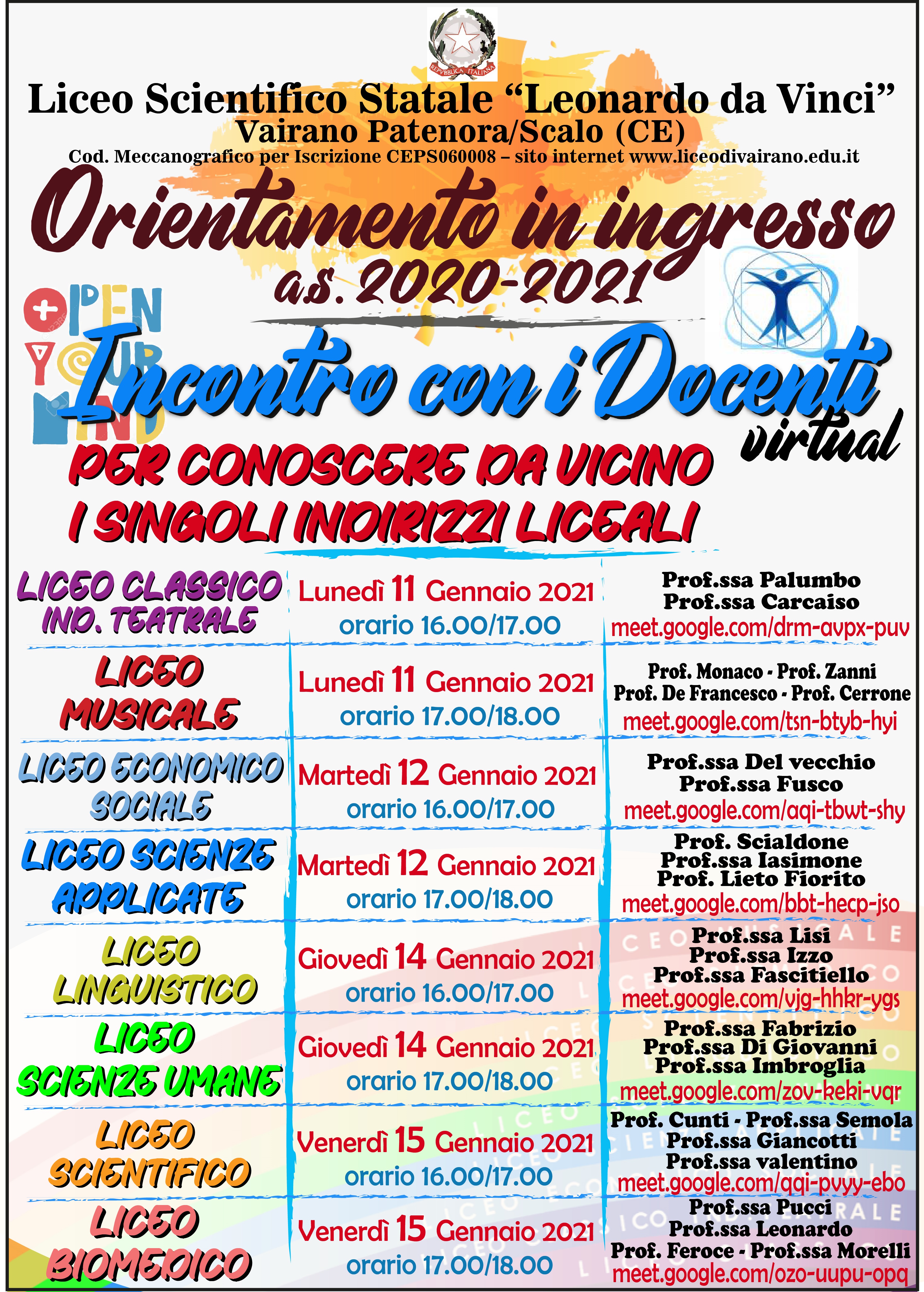 Orientamento in ingresso: Incontro con i Docenti Allegati: Link per gli incontri.pdf[ ] Indietro Avanti