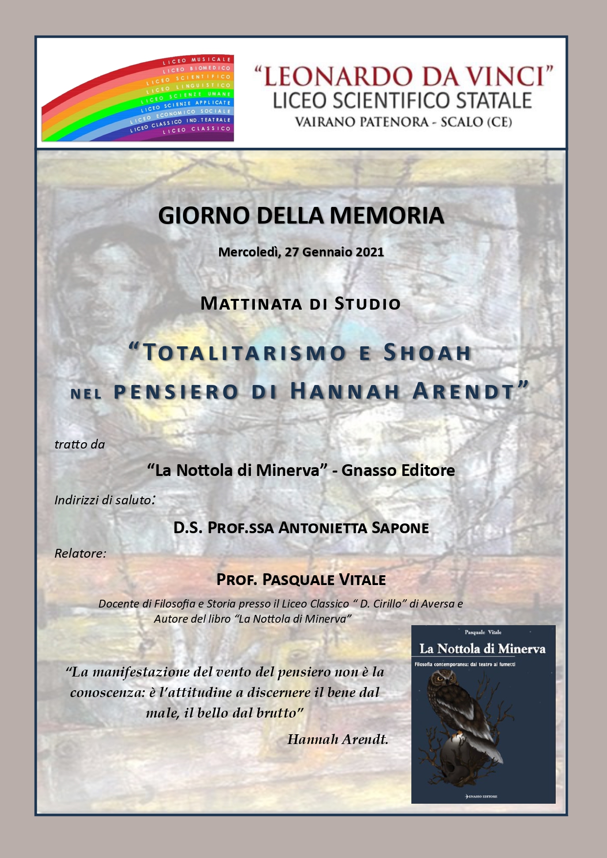 27 gennaio 2021: Giornata di studio al Liceo "Leonardo da Vinci". Totalitarismi e Shoah nel pensiero di Hannah Arendt