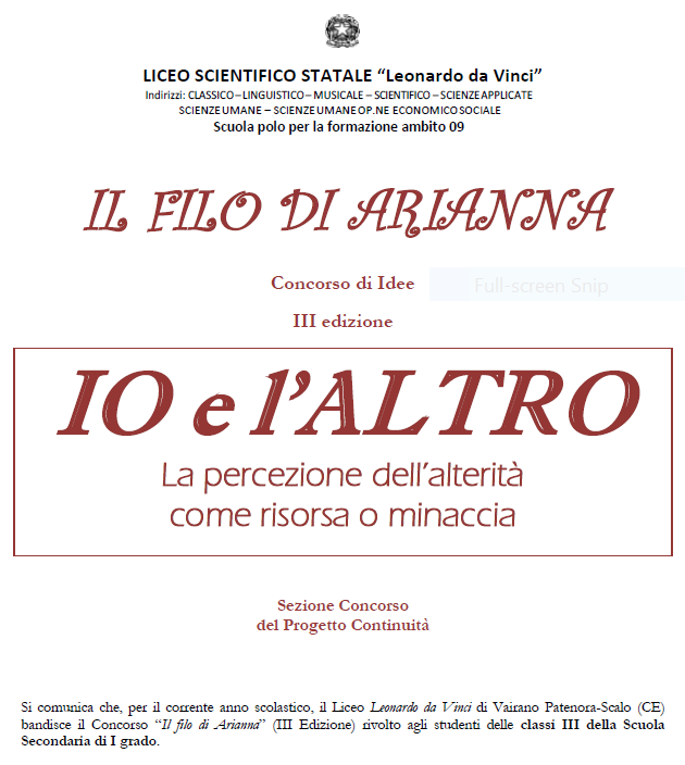 III EDIZIONE DEL CONCORSO IL FILO DI ARIANNA Allegati: BANDO DEL CONCORSO IL FILO DI ARIANNA[ ] SCHEDA DI ISCRIZIONE AL CONCORSO IL FILO DI ARIANNA[ ] Indietro Avanti