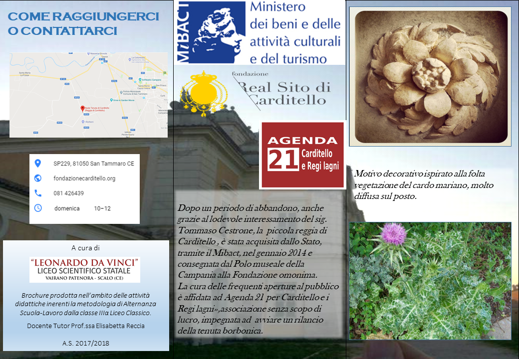 Attività di valorizzazione del Real Sito di Carditello ( San Tammaro) mediante brochure pubblicitaria. Classe 3^A/C Liceo Classico – a.s.2017/2018