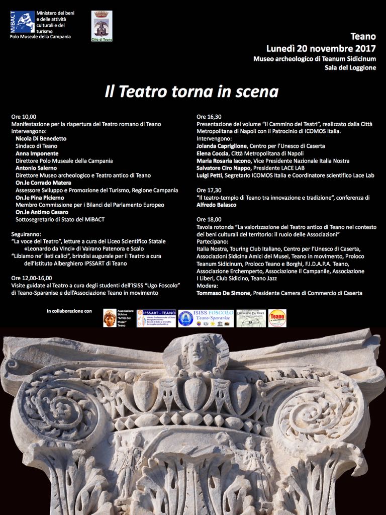 Il Liceo "Leonardo da Vinci" il 20 novembre alle ore 10.00 partecipa alla cerimonia di riapertura del Teatro romano di Teanum Sidicinum. L'indirizzo classico e quello musicale presenteranno un'inedita e suggestiva performance teatrale "La voce del teatro". L'iniziativa rientra nelle Attività di Alternanza Scuola Lavoro realizzate in convenzione con il Polo Museale della Campania (Mibact).